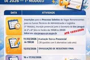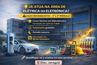 Unidade de ensino tem 40 vagas para o Ensino Médio integrado ao Técnico em Desenvolvimento de Sistemas no período noturno; detalhes podem ser conferidos em vestibulinho.etec.sp.gov.br
